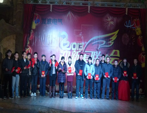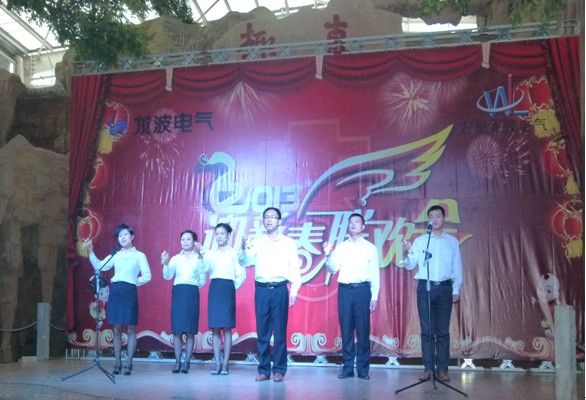 2013年2月1日下午,龍波電氣2013新春聯歡會暨銷售精英及優秀員工表彰大會在市春昇生態園盛大舉行。公司董事長陳文軍、吳浩及其他高管等重要領導及全體員工歡聚一堂,喜迎新春。 董事長陳文軍、吳浩分別向大會送去祝福和表達了希望,并對2012年的發展情況做了總結,對2013年發展規劃做了指引。 聯歡會在一曲員工演唱的《青蘋果樂園》歌聲中拉開帷幕。晚會節目高潮迭起,精彩紛呈。晚會以歡快為基調,小品、相聲…… 無不彰顯著中國傳統文藝的經典,同時現代風格的流行歌曲、現代舞更給觀眾留下了極為深刻的印象。主持人幽默的語言、五彩繽紛的節目與緊張刺激的抽獎引得在場觀眾掌聲如雷,一次次將會場的氣氛帶入高潮。最后的合唱《新年快樂》讓臺上臺下的所有觀眾共同沉浸在歡樂的海洋中。晚會最后所有演職人員向大家鞠躬感謝,整場爆發出熱烈而持久的掌聲。本次晚會不僅讓員工朋友們聚在一起共迎新春佳節,增進友誼,更讓員工們切身感受到了龍波電氣獨特的企業文化! 為感謝龍波員工對公司做出的貢獻,會上同時表彰了銷售精英、先進工作者和優秀員工。晚會作為龍波電氣新的一年的新起點,將繼續本著“誠信至上,以客為本”的服務宗旨勇往直前,不斷開創2013年事業的新境界!