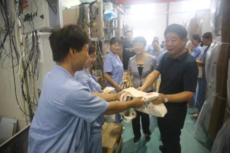 2021年8月12日上午,市委常委、政法委書記錢界殊一行到公司,開展夏日送清涼,慰問戰斗在高溫一線的員工們。市總工會黨組書記、副主席劉研梅,高新區黨工委書記、管委會主任宋偉等陪同慰問。錢界殊書記來到生產車間,親自為一線員工送上防暑降溫用品,詢問了他們生產生活情況,并囑咐他們要注意生產、防疫安全,注意身體健康,勞逸結合,防止高溫中暑。 公司董事長陳文軍向領導們介紹了公司生產運營情況,并就公司安全生產、疫情防控和防暑降溫工作措施做了詳細介紹。