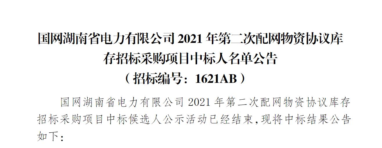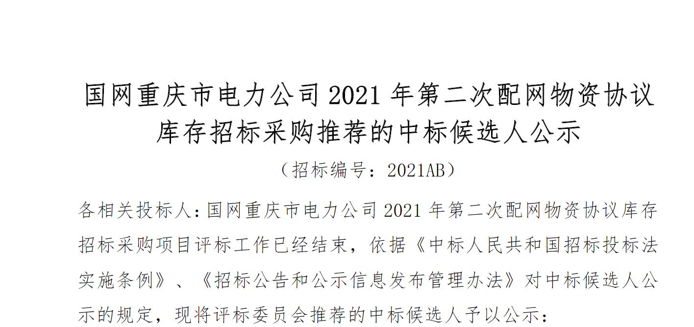 我司成功中標湖南省和重慶市電力公司第二次配網物資協議庫存招標采購項目