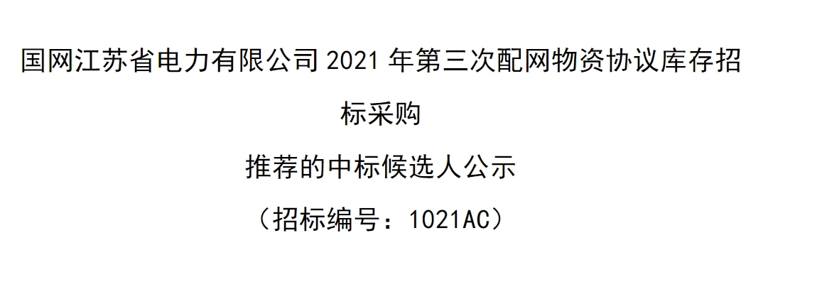 中標喜訊!成功中標江蘇省電力有限公司第三次配網物資協議庫存招標采購項目