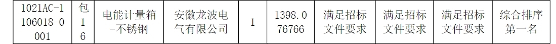 近日,龍波電氣又迎來喜訊,在剛剛結束的國網江蘇省電力有限公司2021年第三次配網物資協議庫存招標采購項目評審工作中,我公司成功中標電能計量箱-不銹鋼、低壓開關-營銷兩個標段,中標總金額為1749.47萬元。 此次中標,再次展現了龍波電氣良好的發展勢頭,在眾多競爭者中脫穎而出是對公司綜合實力、技術水平、產品質量的肯定,也是對公司品牌的認可,相信公司可以在電氣行業走的更遠更穩!