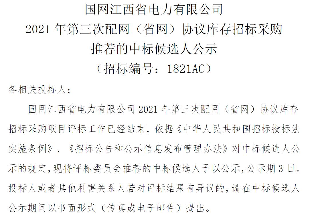 近日捷報頻傳,龍波電氣憑借著優質的產品、雄厚的技術力量以及良好的業界口碑,成功中標國網江西省電力有限公司2021年第三次配網(省網)協議庫存招標采購項目標準化定制一二次融合成套環網箱SF6分標包2,中標金額1051.974853萬元。本月多個國網省電力公司的投標項目公司領導十分重視,對投標文件、技術質量等都明確了具體要求。因時間緊、工作量大,在領導的帶領下,招投標部門的同事團結協作、共同努力,高效率、高質量完成了編制投標文件的任務,并按期遞交招標方。本次中標印證了公司良好的發展趨勢,我們一定會再接再厲,為客戶提供更可靠更優質的產品及服務!