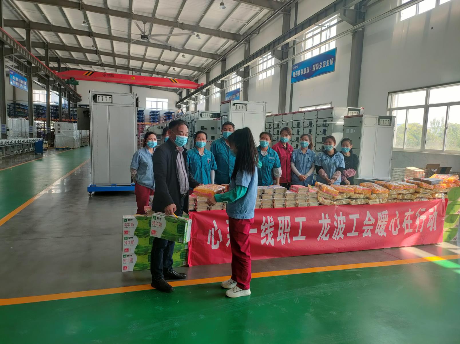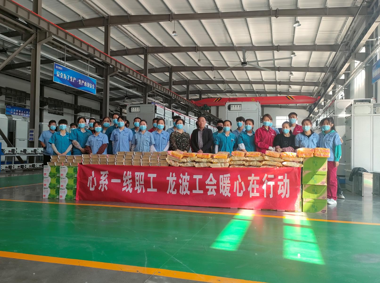 春意融融,百草吐芳。“五一”國際勞動節,公司副總經理王宇、工會主席王芙玲,深入車間慰問一線加班員工,送上節日的問候和祝福。副總經理王宇首先祝一線員工們“五一勞動節”快樂,并對公司一線員工在疫情特殊時期,充分利用放假時間,確保公司按時按量的完成生產任務而自主加班的行為,做出充分肯定,同時叮囑車間主任要嚴格按照疫情防控要求,加強員工出入公司管理,時時關注每一位員工的動態情況和健康狀況,在完成生產任務的同時必須做好自我防護工作。“特殊時期,不變的關愛,感謝公司給我們送來的關愛”, 接過副總經理王宇手中的慰問品時,成套車間員工于東靈感動地說。此次慰問使廣大員工感受到公司的關懷和重視,進一步激發了員工的工作積極性。大家紛紛表示,要以更加高昂的工作熱情和認真負責的態度投入到工作當中,保質保量的完成各項生產任務!
