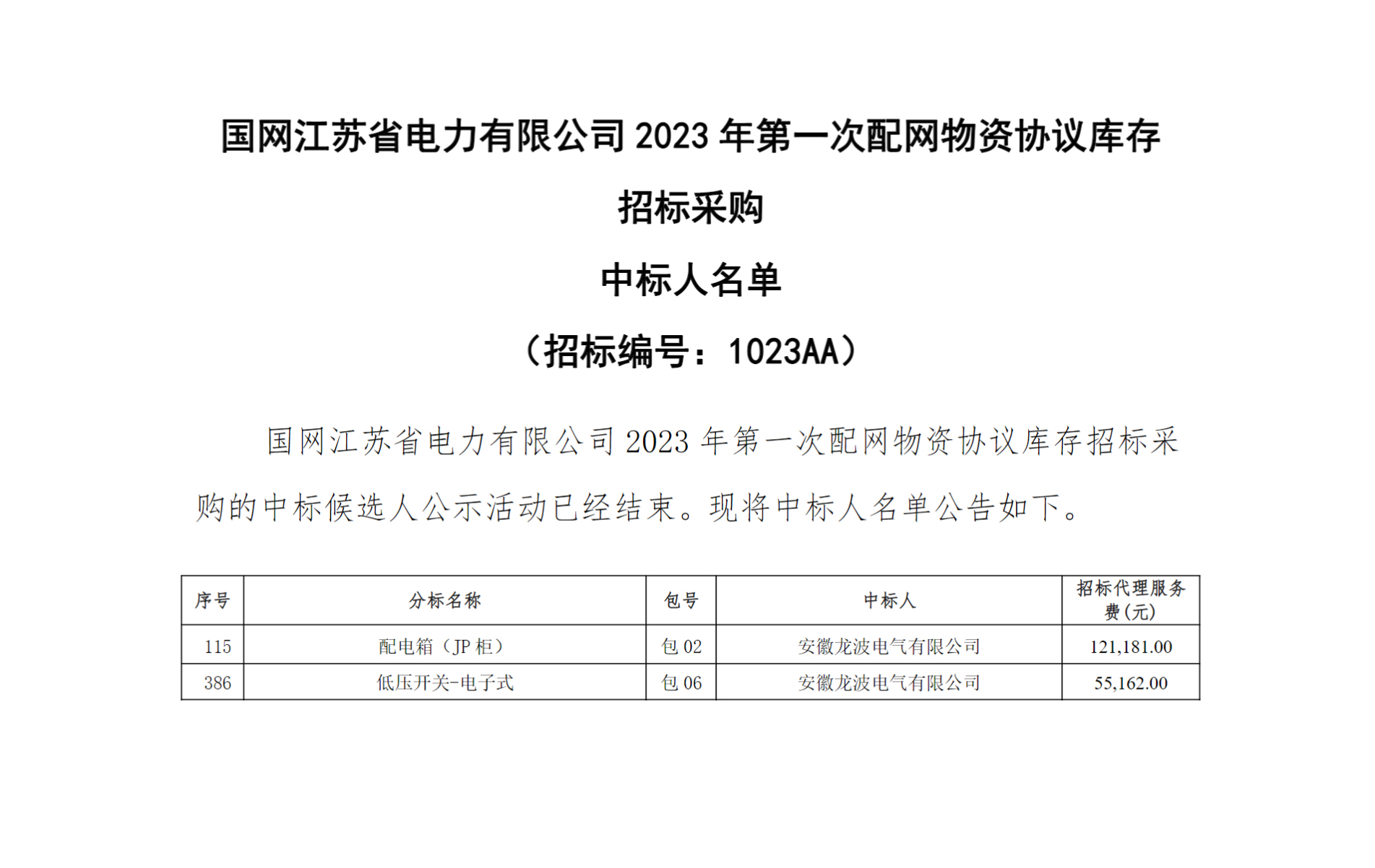 中標喜訊!成功中標國網江蘇省電力有限公司2023年第一次配網物資協議庫存招標采購項目